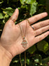 Crafted with a copper gold filled pendant, surgical stainless steel, and a gold plated chain, this necklace is both strong and beautiful. Feel safe and look great with the Hamza symbol shining around your neck. Be bold and be lucky!