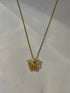 This stunning jewelry piece features a 24k gold filled, lead-free, nickel-free pendant with dazzling diamonds and gorgeous butterfly design. Adorned with a stainless steel chain, this necklace adds a touch of elegance and beauty to any look.